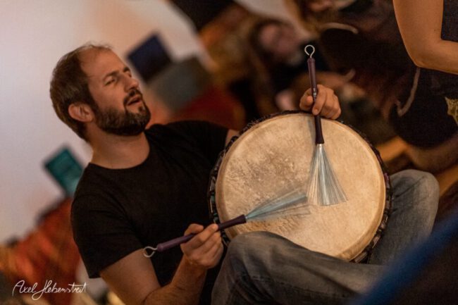 Maksym Kulchytskyi ist Live Musiker der Blind Contact Impro Jams und unterstützt oft bei Singkreisen mit Percussion.