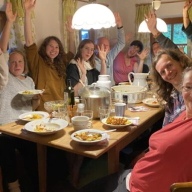 Vier Tage Auszeit in den Bergen erwartet dich, mit Wanderungen, Singkreisen mit Anna-Sophia, gemeinsames Kochen unter der Leitung von Caro & Angelika, Saunieren, Wildkräuter sammeln, Yogaunterricht, tiefgehende Gespräche und Redekreise vom Herzen.