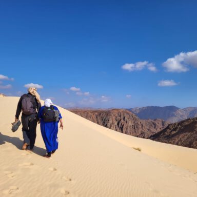 Lasst euch auf eine spektakuläre Wanderung ein, die euch geschichtsträchtige Orte aus der Bibel zeigt, beispielsweise auf dem Berg Sinai, wo Moses die Zehn Gebote empfangen haben soll. Die Sand- und Steinlandschaften, die wir in der Sinai Wüste durchstreichen, sind sehr abwechslungsreich.